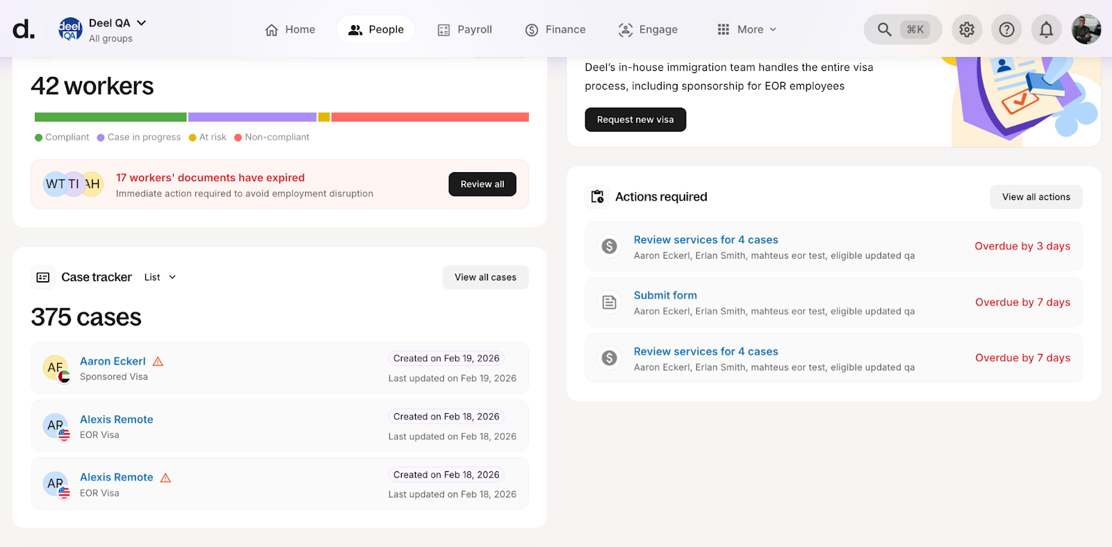 If there are visa matches based on the request, clients will be able to create a case. If no match is found, Deel’s team will follow up to discuss alternative options.