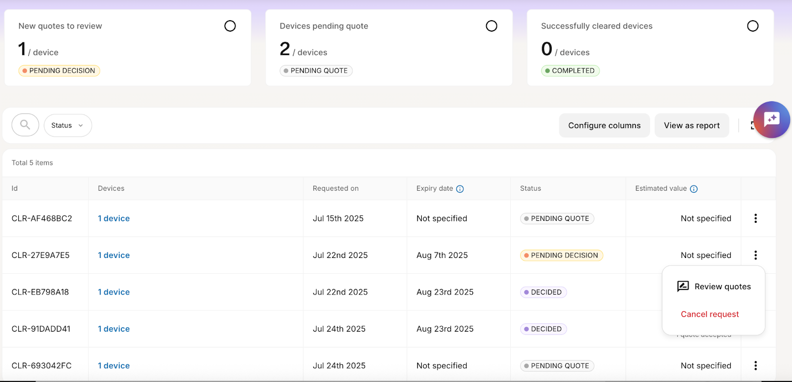 Deel IT's Device Clearance service helps you recover value from unused or decommissioned devices by handling the entire clearance process from quote to collection, inspection, and resale.