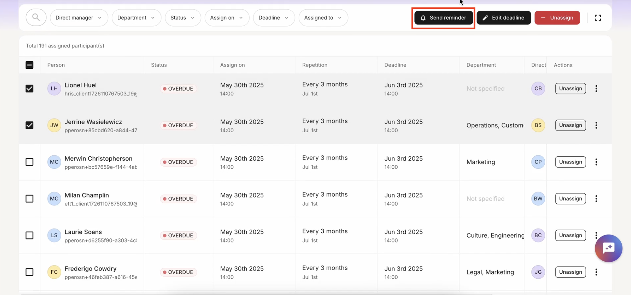 The survey is assigned to employees, and they’ll be notified via email to fill it out.