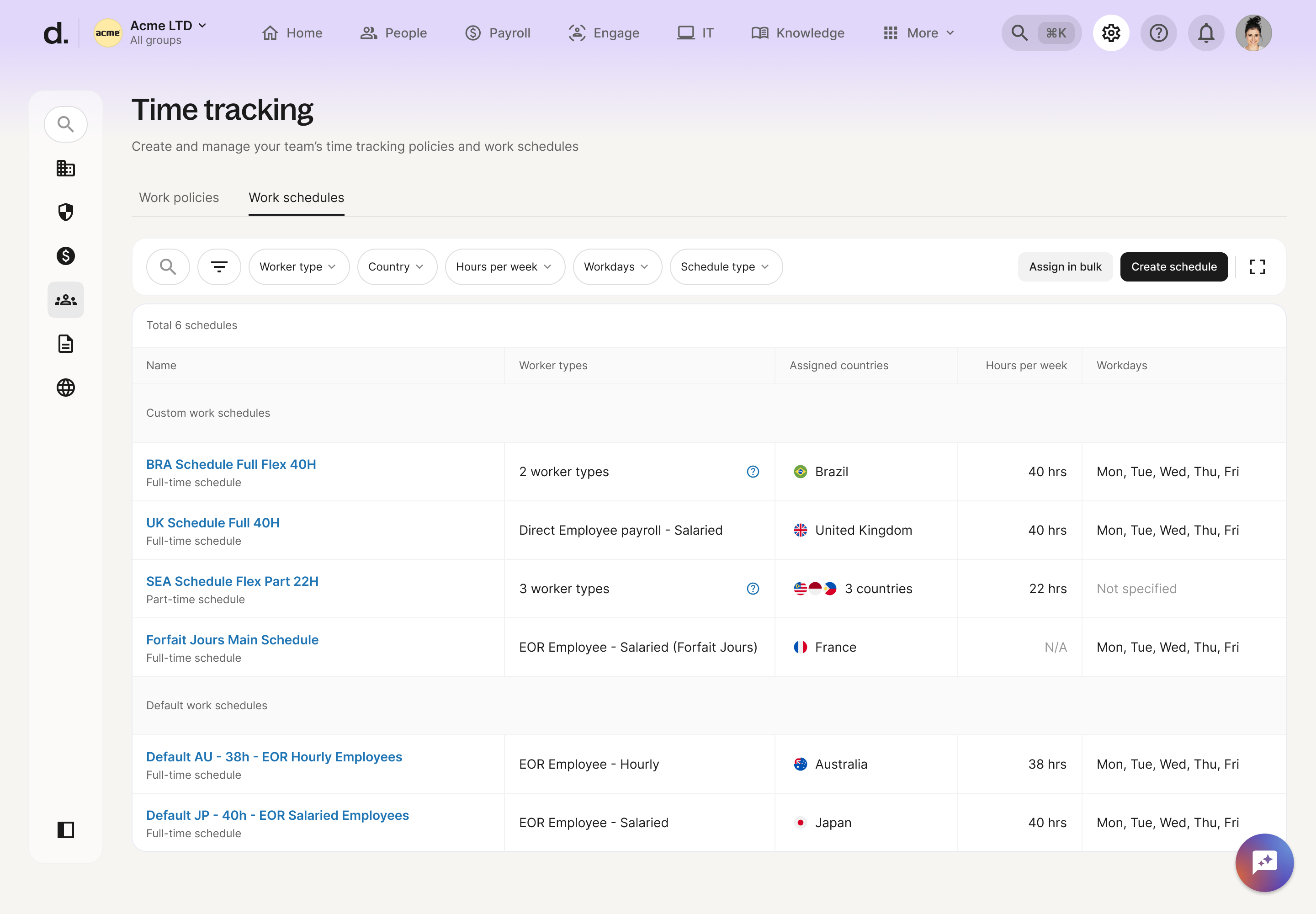 This article guides clients on how to set flexible or fixed working hour schedules and assign them to workers in one or more countries.