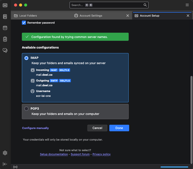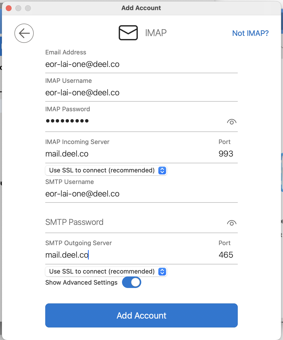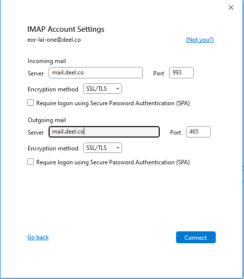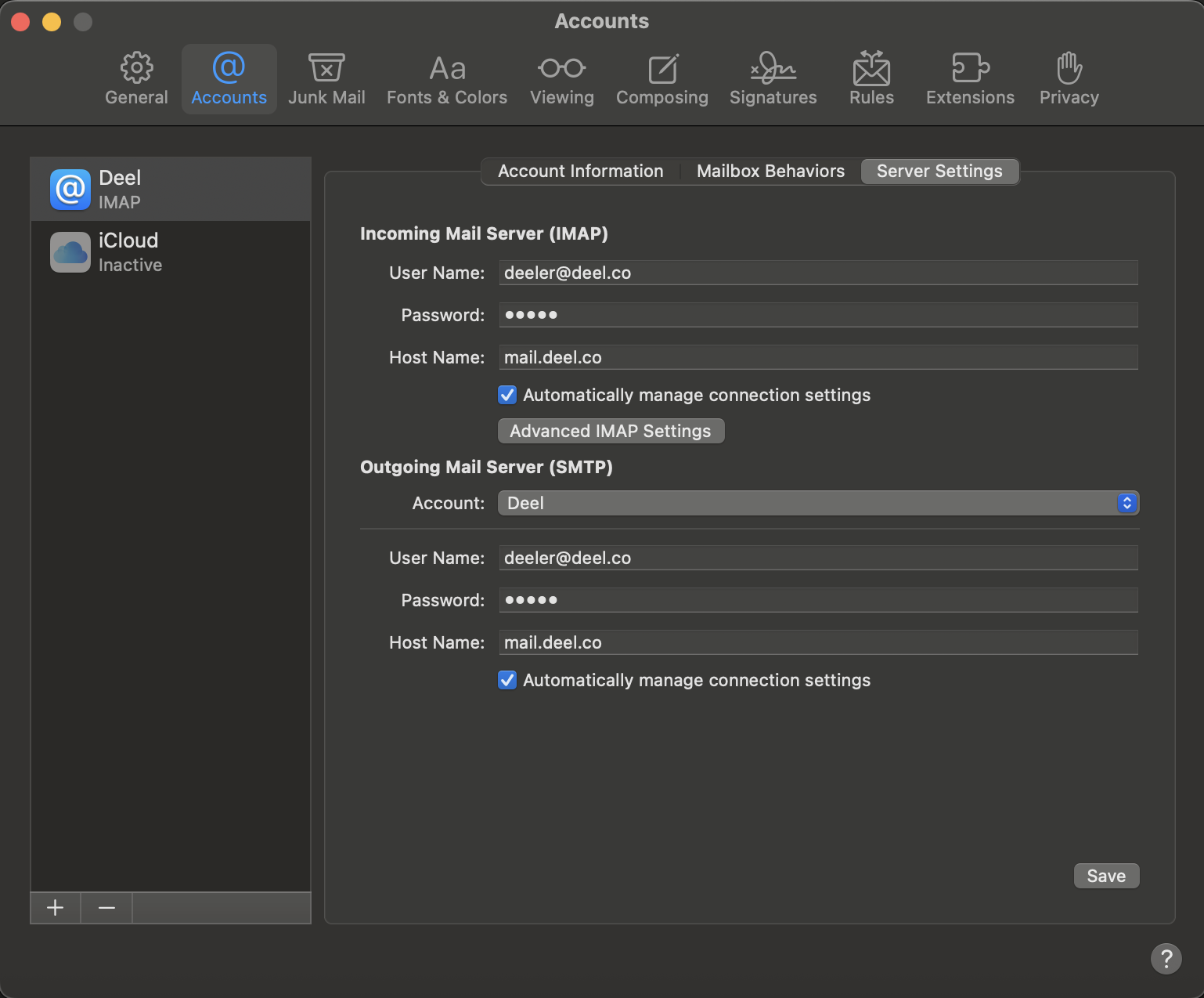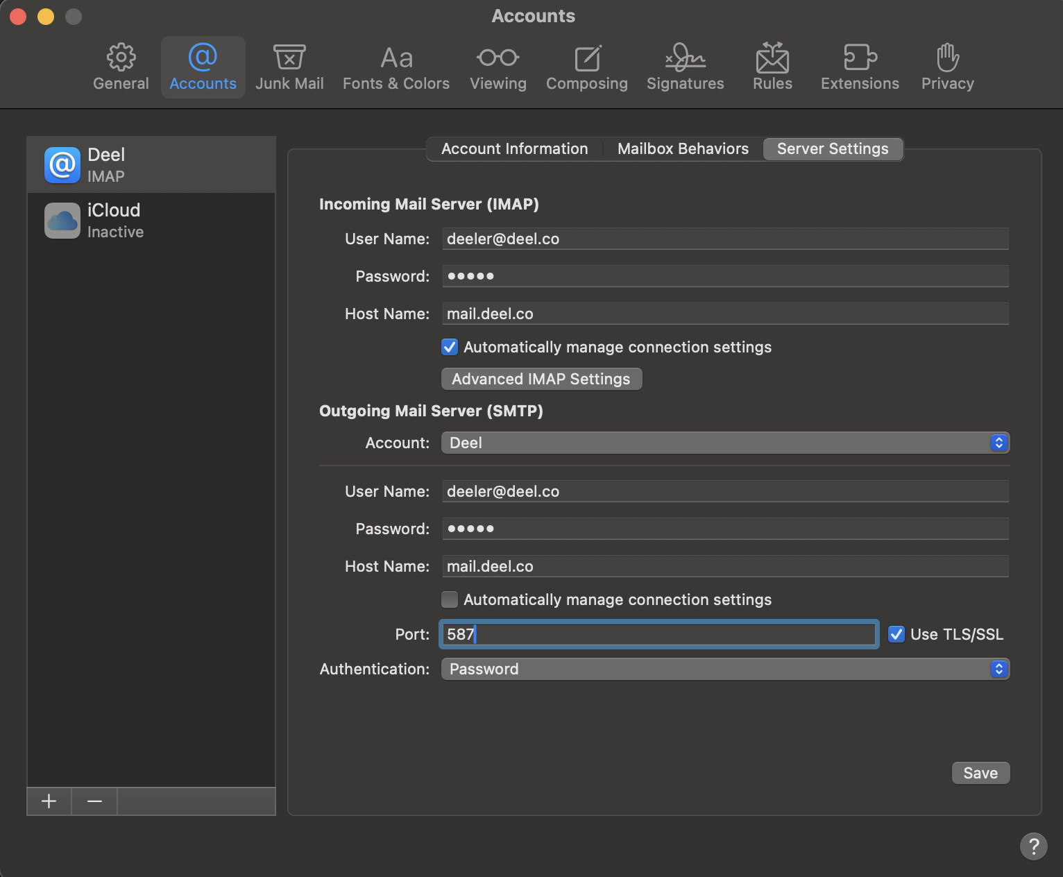 mail.deel.co - In the Outgoing Mail Server, enter: