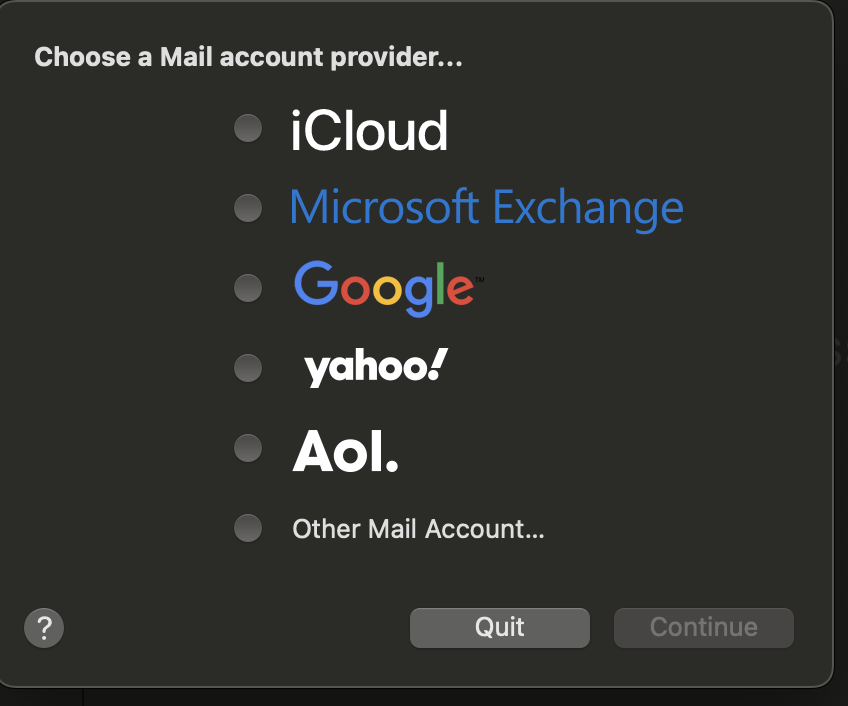 Open the Mail app from Launchpad. If this is your first account, you'll be prompted to choose a mail provider.