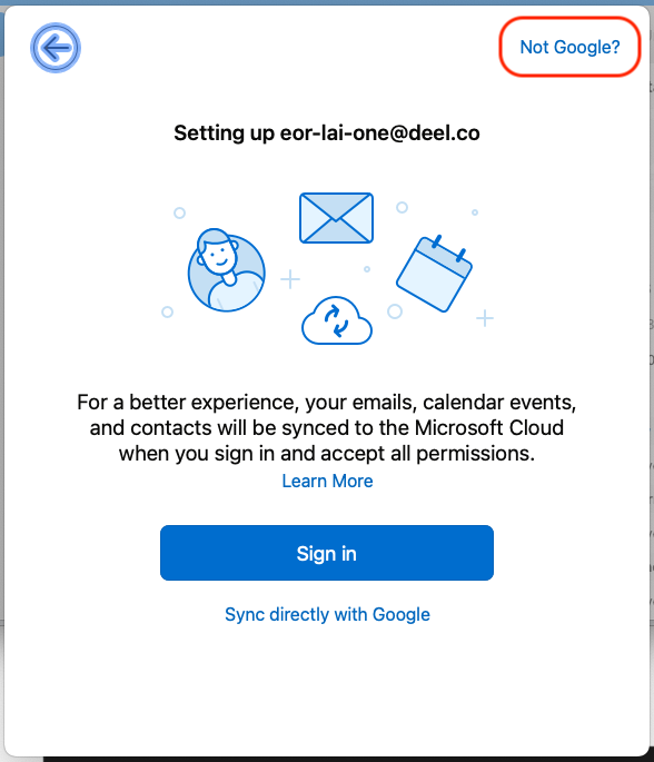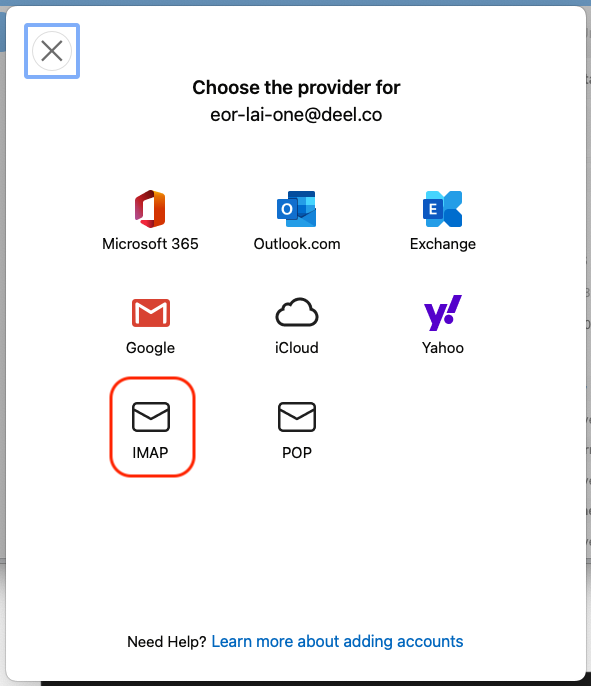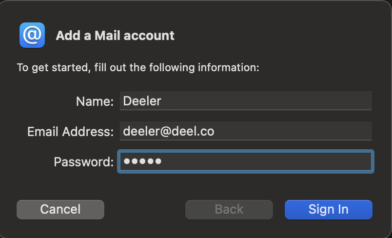 Select Other Mail Account. Enter the Deel email address and password provided in your Deel app and click on Sign In.