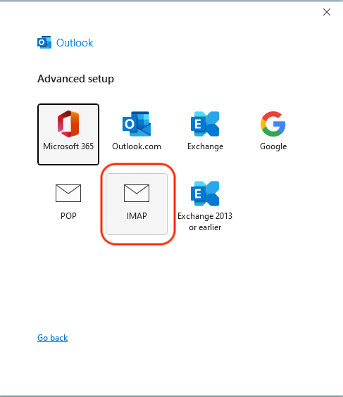 ✅ Step 3 - Select IMAP as the account type, then click Continue.