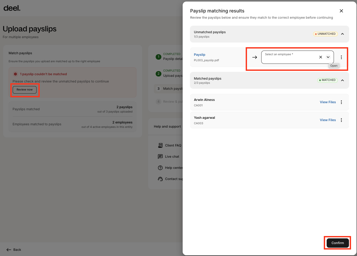 You can also choose to skip unmatched & error files. When toggled on, it will skip all unmatched or error ones and show pdfs that are mapped to the corresponding employees.