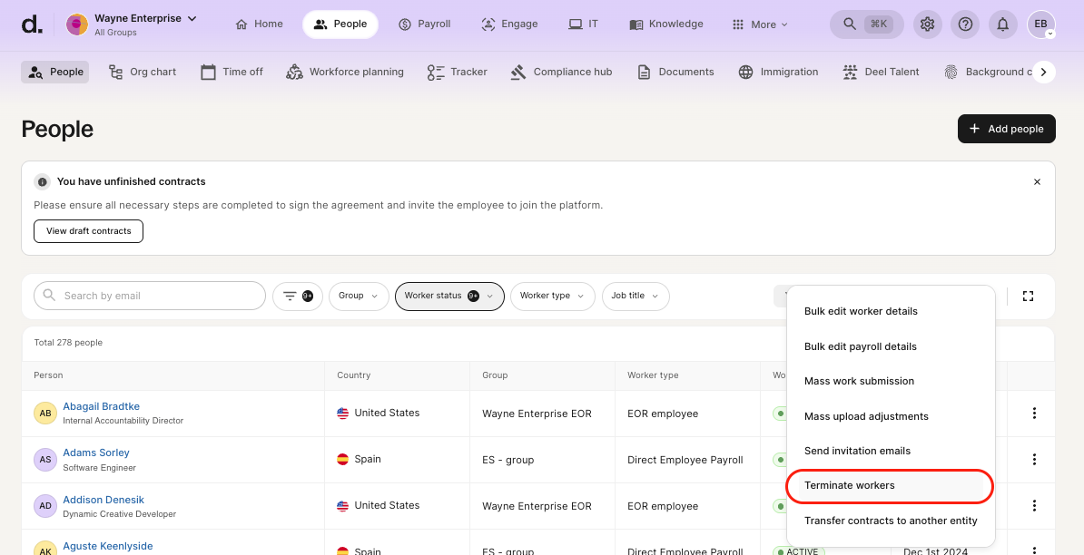 Please note that you can only select direct employees-payroll that don't have an active termination request pending in the Deel system.