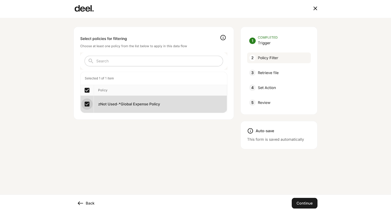 - On the Policy Filter step, choose at least one policy.