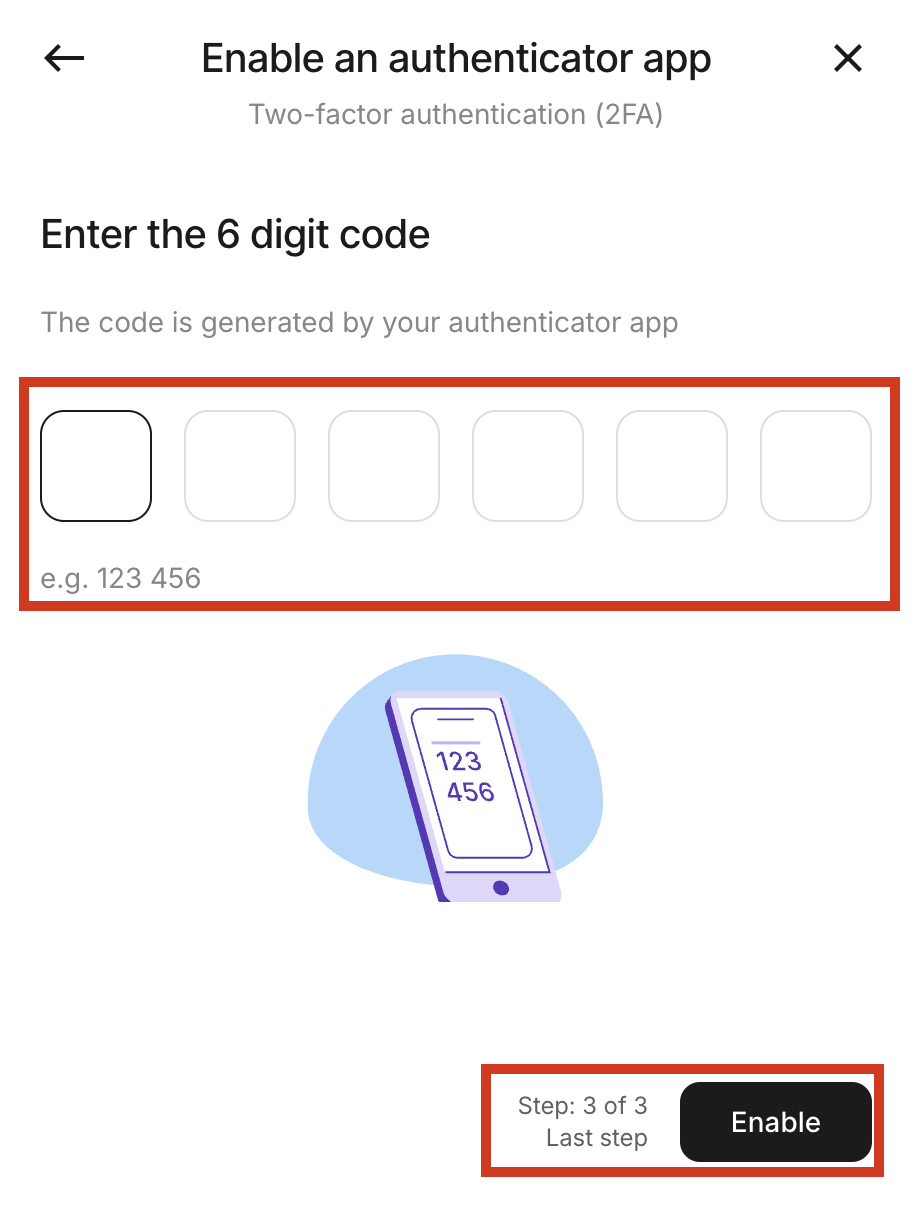 - Scan the QR code from mobile to link it to your account & click "Next"