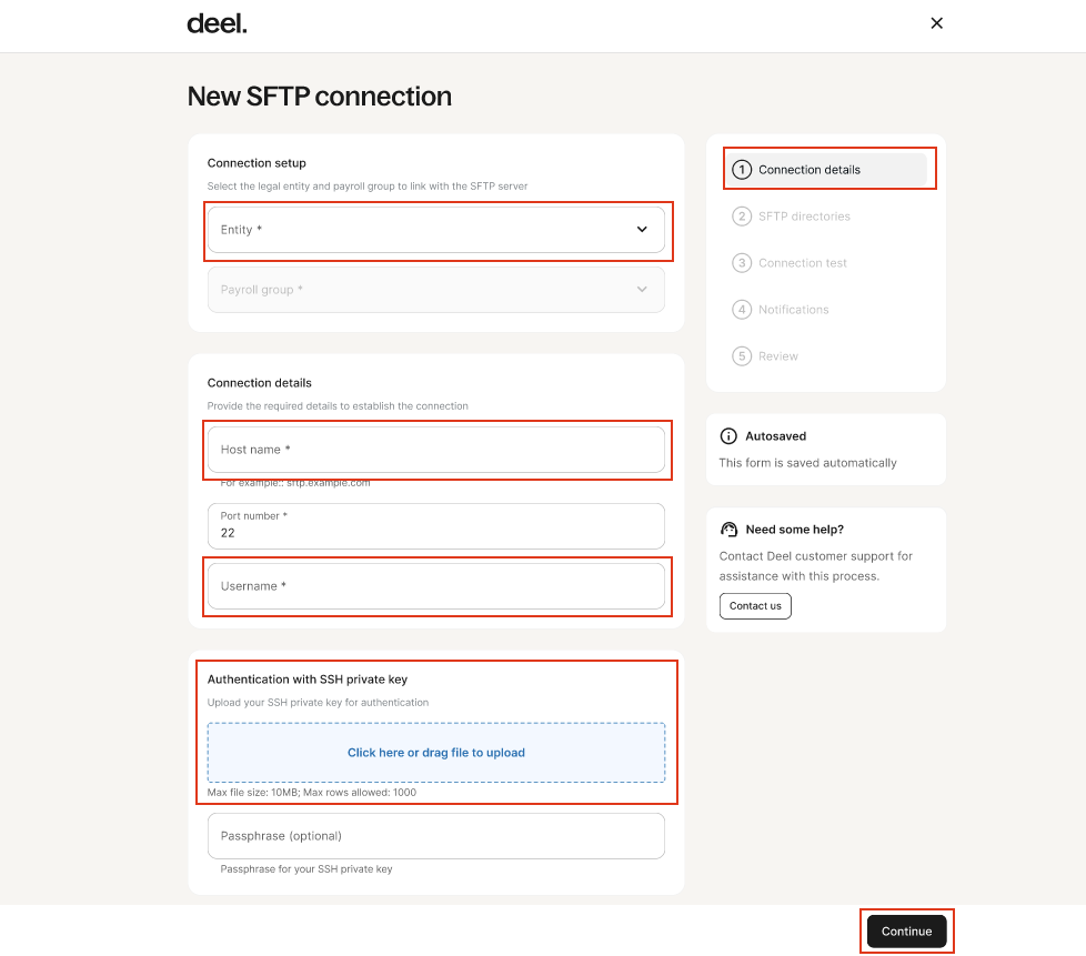 - Payroll Entity should be setup in Deel platform before enabling the SFT connection