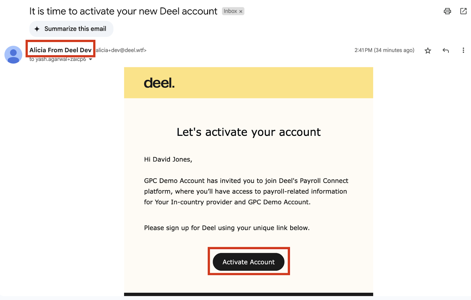 Once clients add Payroll In-country providers and invite their Payroll Managers to Deel, the Payroll managers will receive an email to access Deel. Payroll managers should check all email folders, and then activate their account by following below steps: