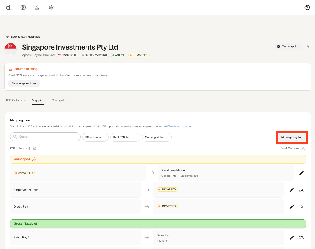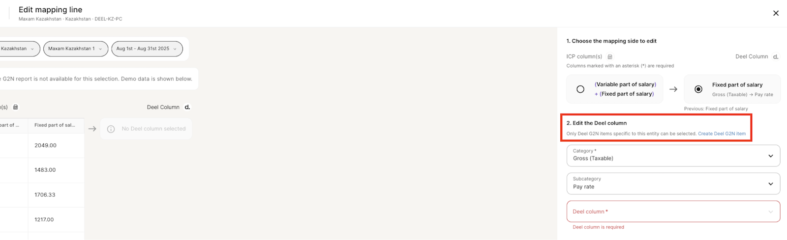 Mapping means the item mapping of the local payroll providers G2N columns with Deel G2N columns, which allows for unification of all G2N codes translating into Deel G2N codes.