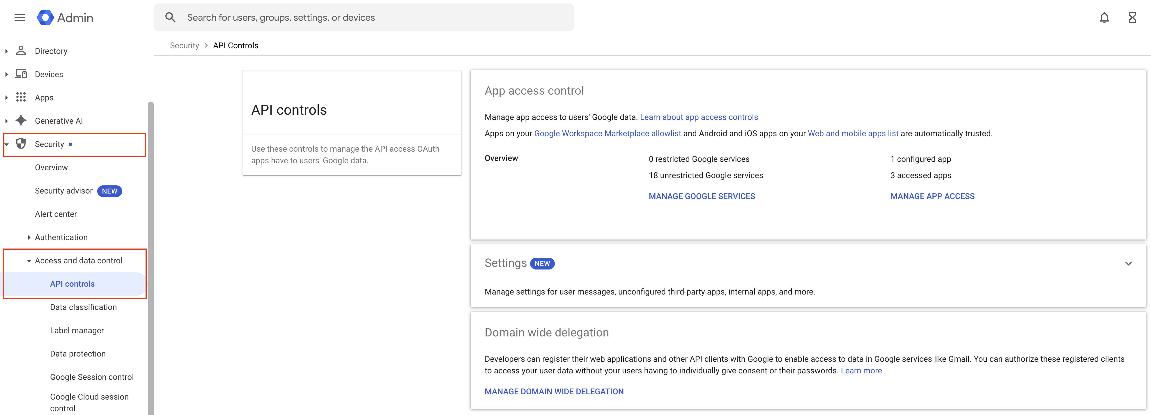 On the API Controls page, click Manage Domain-wide Delegation.
