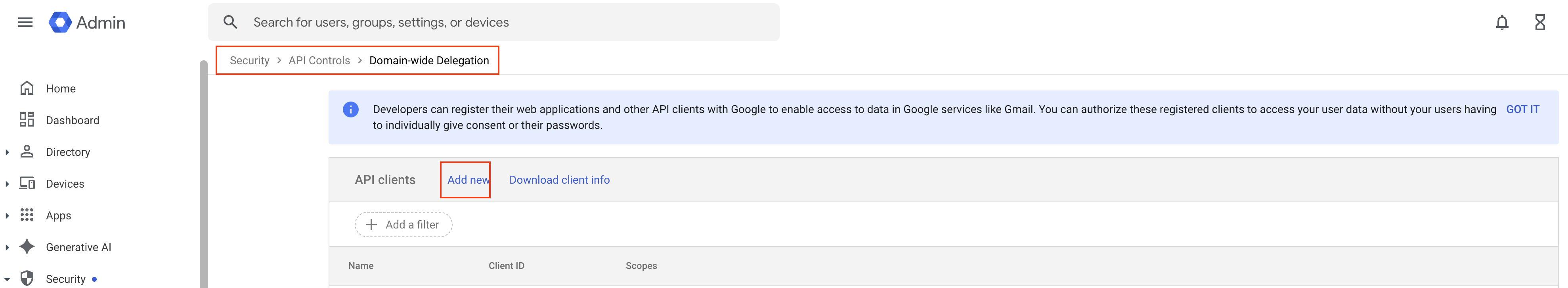 In this step, you’ll authorize a global service account managed by Deel to access Gmail accounts across your domain.