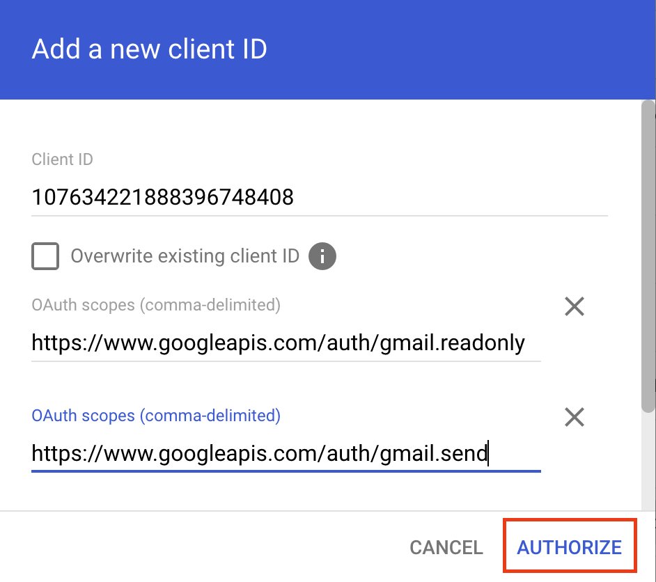 - Client ID = 107634221888396748408