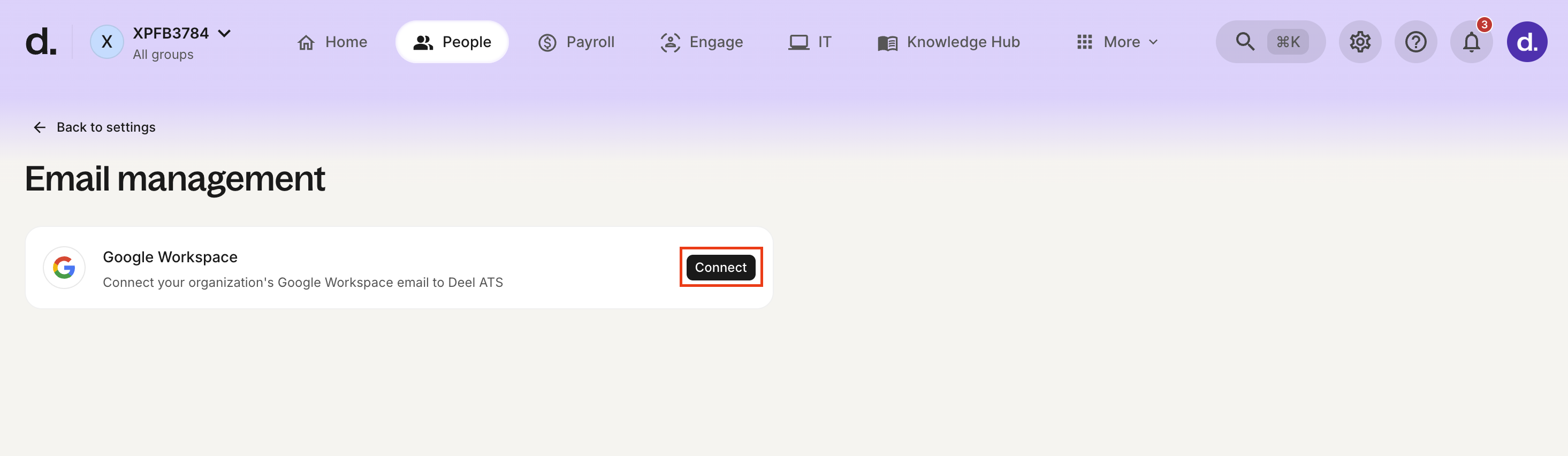 Once the Google Workspace setup is complete, finalize the connection in Deel ATS.