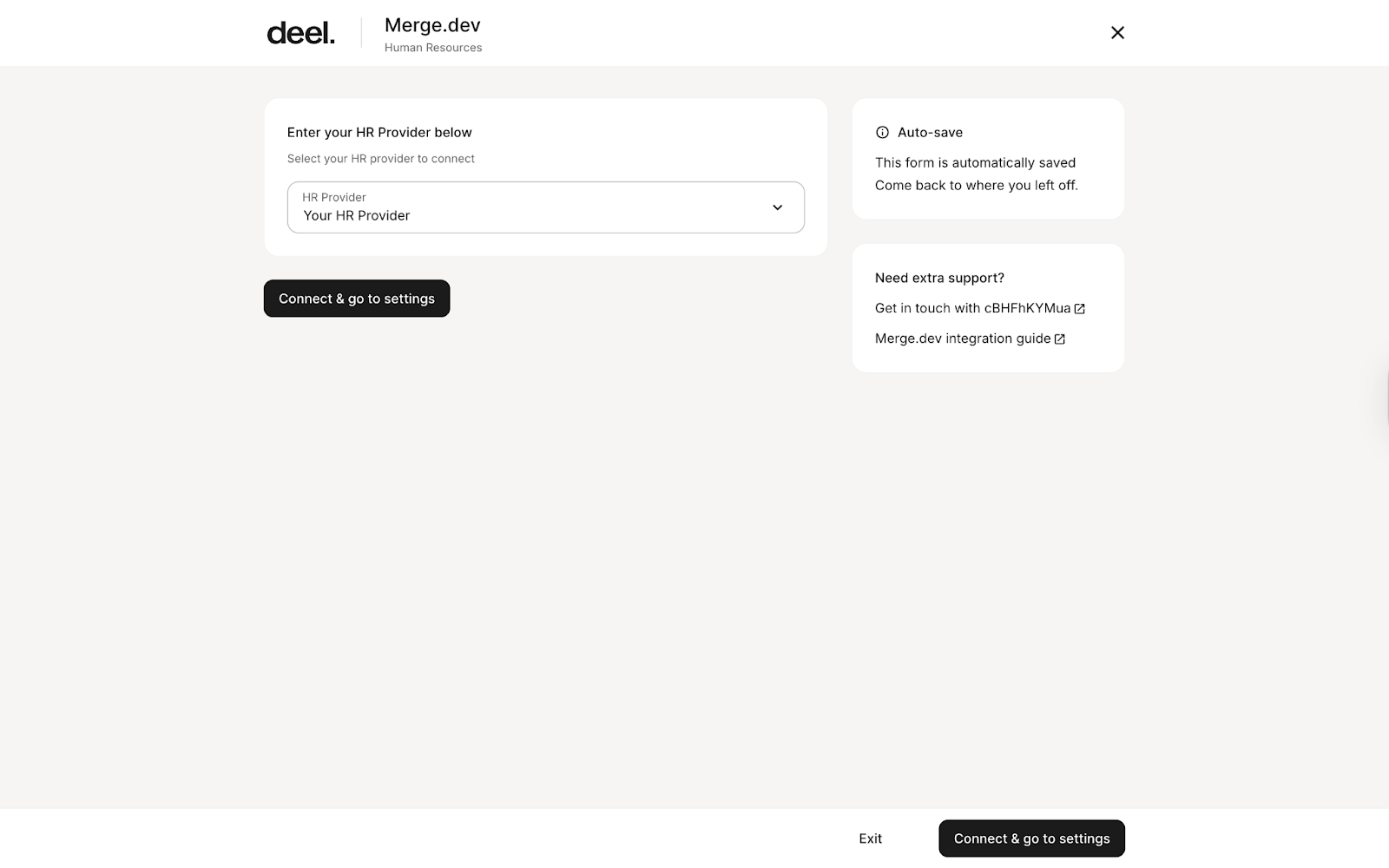 In this section, we’ll guide you through how to connect Deel to Merge.dev.