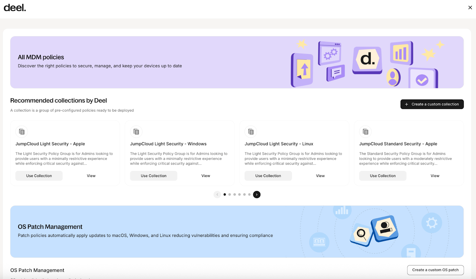 Deel On-Platform Mobile Device Management (MDM), powered by JumpCloud, brings device security and lifecycle control into the same place you already manage your workforce. Built for IT, HR, and Operations leaders, it helps you standardize how company devices are enrolled, configured, monitored, and supported, without bouncing between tools. With real-time fleet visibility, policy collections, automated patching, and remote actions, teams can reduce manual work and deliver a true zero-touch experience from first boot to offboarding.