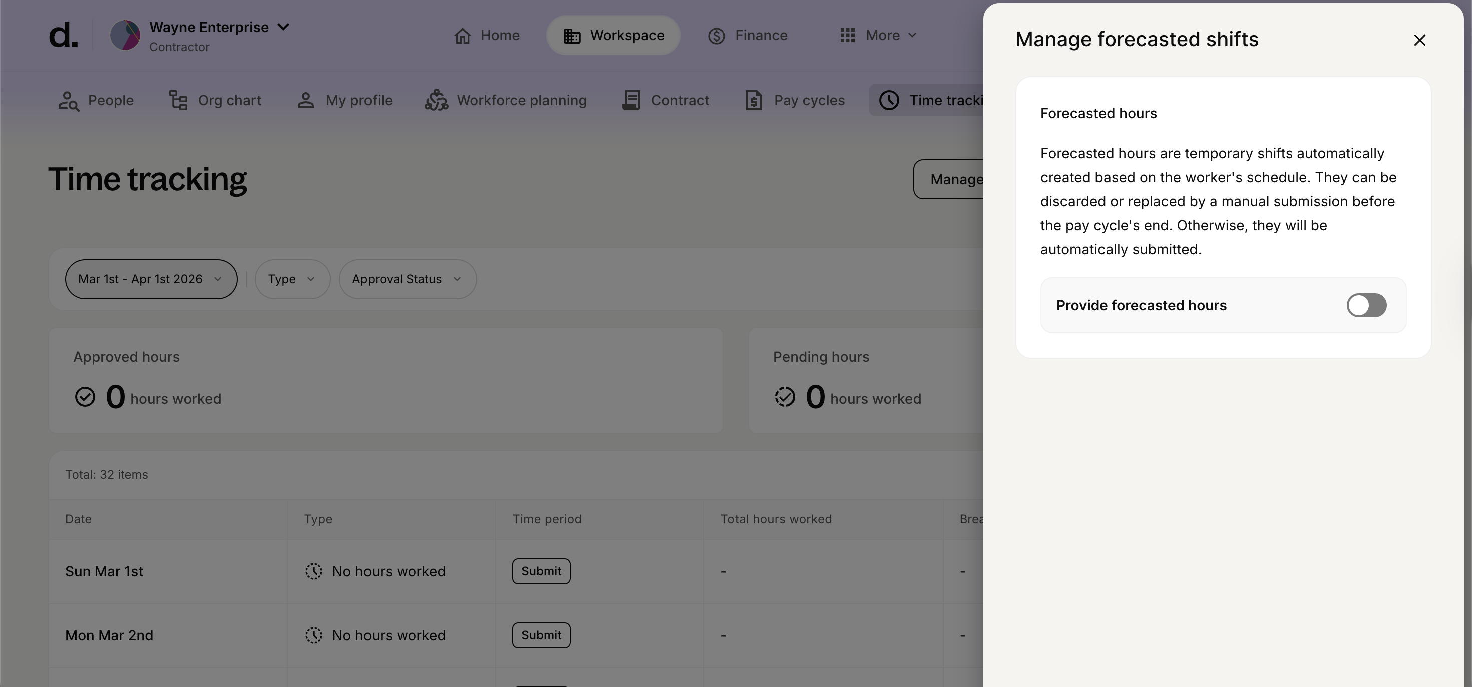 Independent contractors can now use the Forecasted Shifts feature to automatically populate their timesheets.