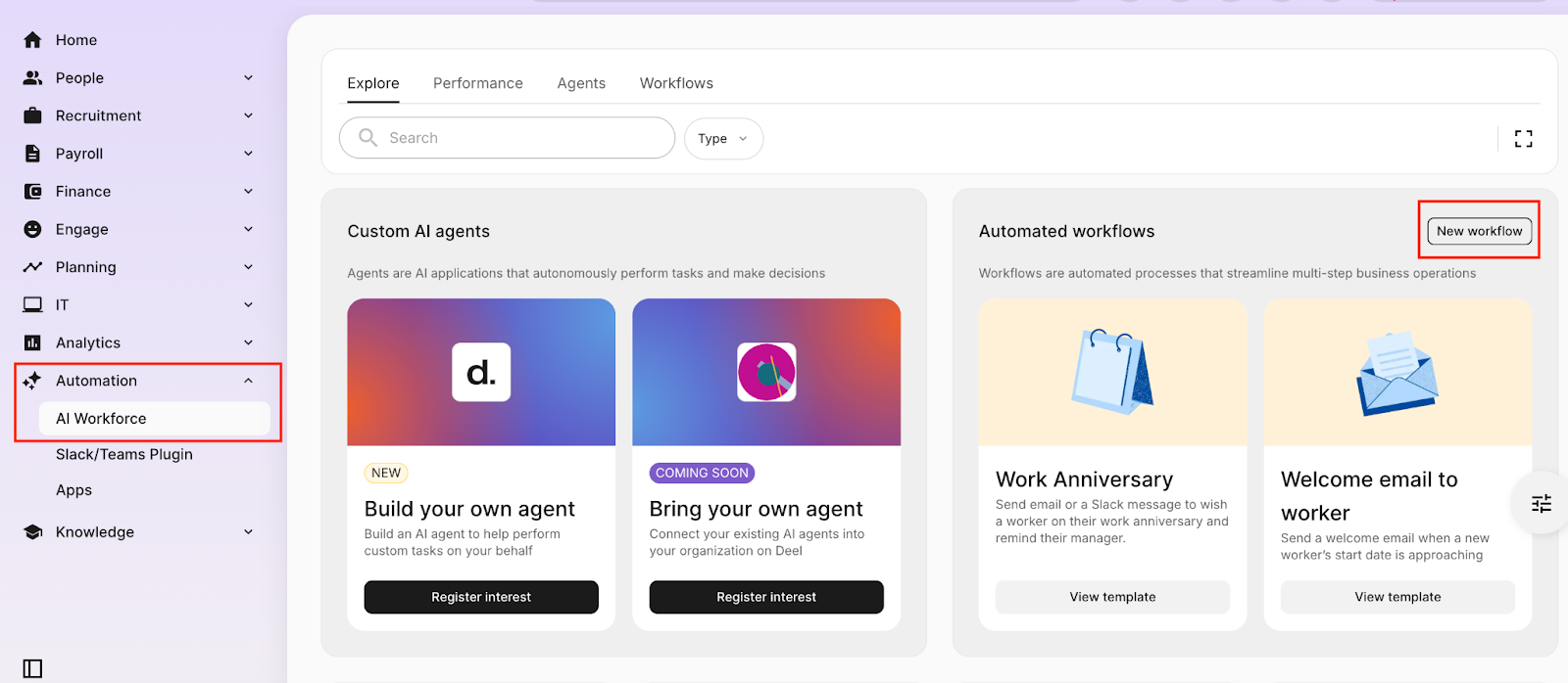 Step 1 - Go to Automation > AI Workforce and click New workflow